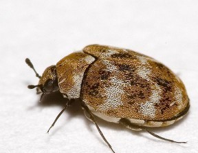 El escarabajo de las alfombras (Anthrenus scrophulariae) es un coleóptero de la familia de los derméstidos; mide no más de medio centímetro. Está cubierto de unas escamas muy finas y de colores. Al poner los huevos, la madre busca un sitio donde las larvas puedan alimentarse (ropa, plantas secas, animales muertos, restos orgánicos del cuerpo humano como caspa o piel muerta). Puede poner de 42 a 110 huevos. Pocos días después de poner los huevos, muere.